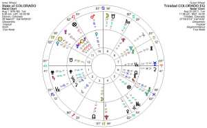 Colorado’s cardinal earth move in ambitious Capricorn (in solstice degree, I might add) is squared by transiting cardinal fire Uranus in Aries. Earth and fire aren’t “friends” and when the two elements are in square by planet transit, something is going to snap.