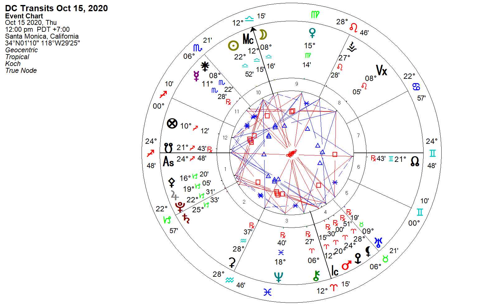 For me, the key moment of the Barrett hearings was when, on 13 Oct., Sen. Sheldon Whitehouse (love the name!) made his presentation about the recent role of dark money in influencing the courts and Congress. The moments when the cameras focused on key Republicans and the nominee showed some rather uncomfortable faces of unmasking (so to speak). The station of Mercury in Scorpio seemed most appropriate, along with the other, “bigger” configuration, of course.